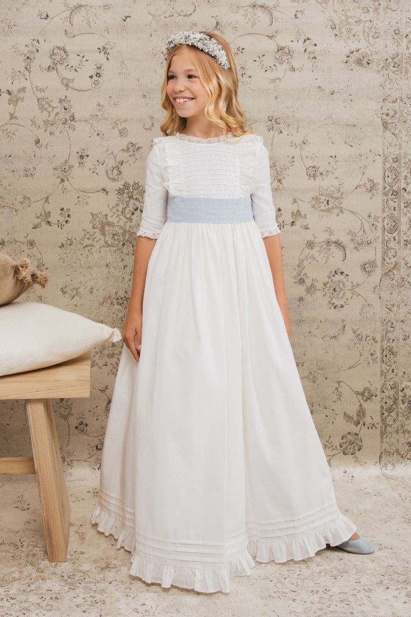 Unsere hochwertigen Kommunionkleider vereinen traditionelle Eleganz mit modernen Designs und sorgen für einen unvergesslichen Auftritt an diesem besonderen Tag. Jedes Kleid wird mit viel Liebe zum Detail aus edlen Materialien gefertigt, um höchsten Tragekomfort und stilvolle Ästhetik zu garantieren. Entdecken Sie unsere vielseitige Kollektion, die von klassischen Modellen bis hin zu schlichten, zeitlosen Designs reicht – perfekt abgestimmt auf die individuellen Vorlieben Ihres Kindes und perfekt angepasst in unserem hauseigenen Atelier.