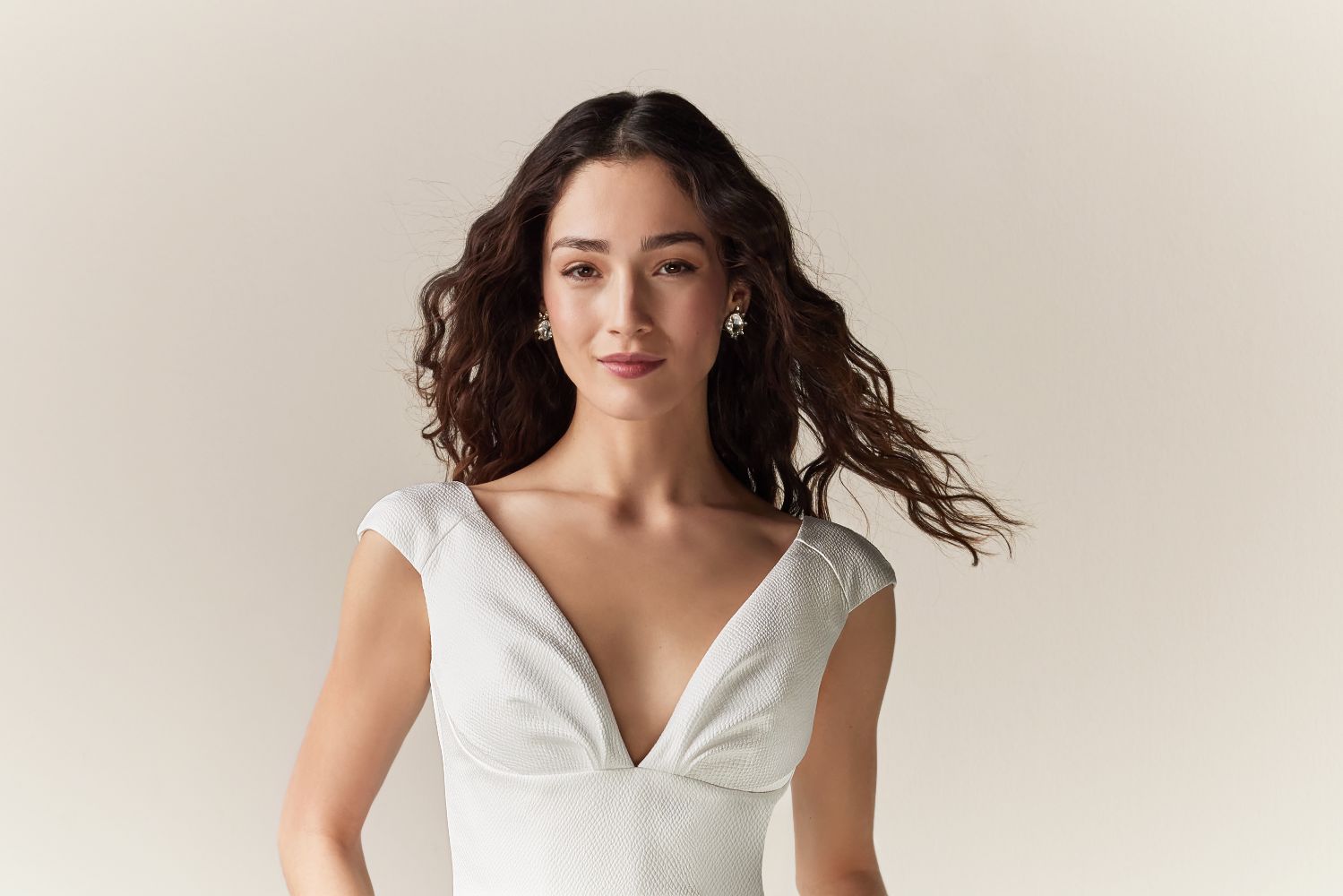 - Perfekt für Bräute, die eine minimalistische, aber dennoch ausdrucksstarke Silhouette bevorzugen.